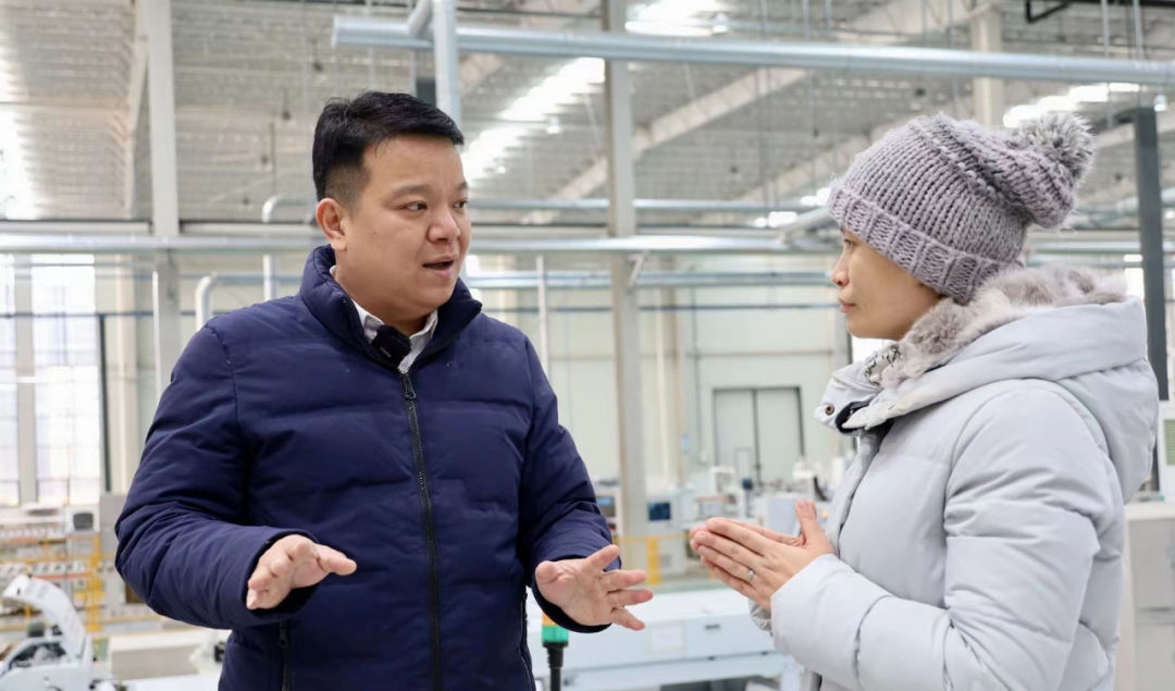 ▲领军董事长李香祖介绍yabo.com涂装的板材